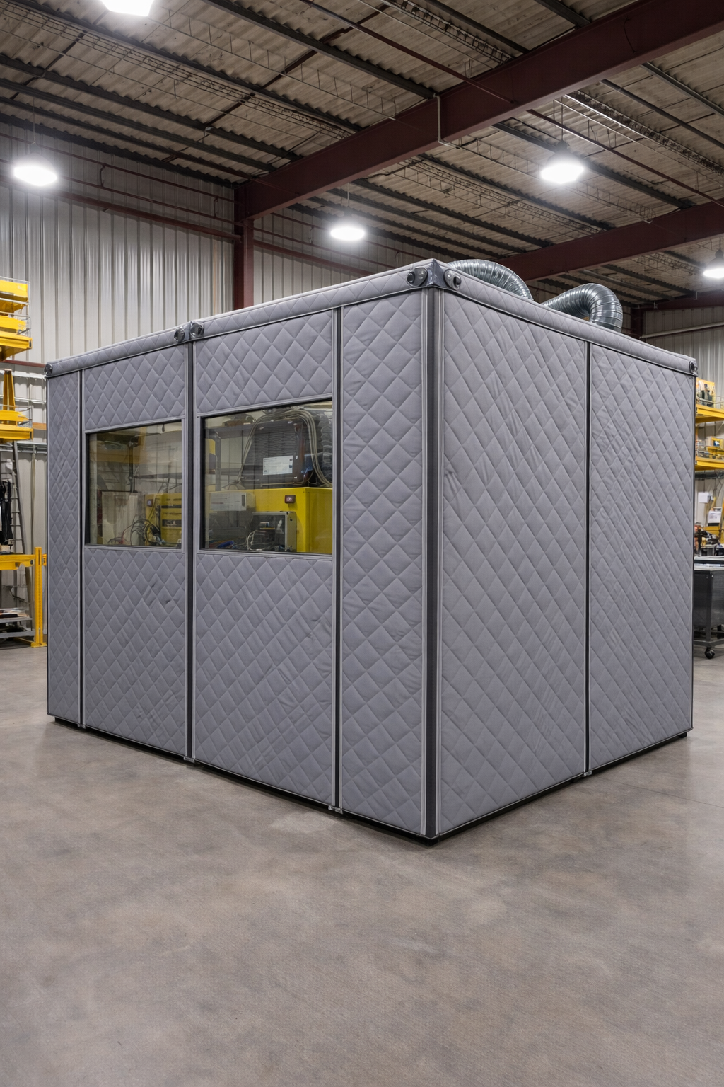 ✔️ Durable Industrial Construction – Built with galvanized steel frames and multi-layer acoustic composites
